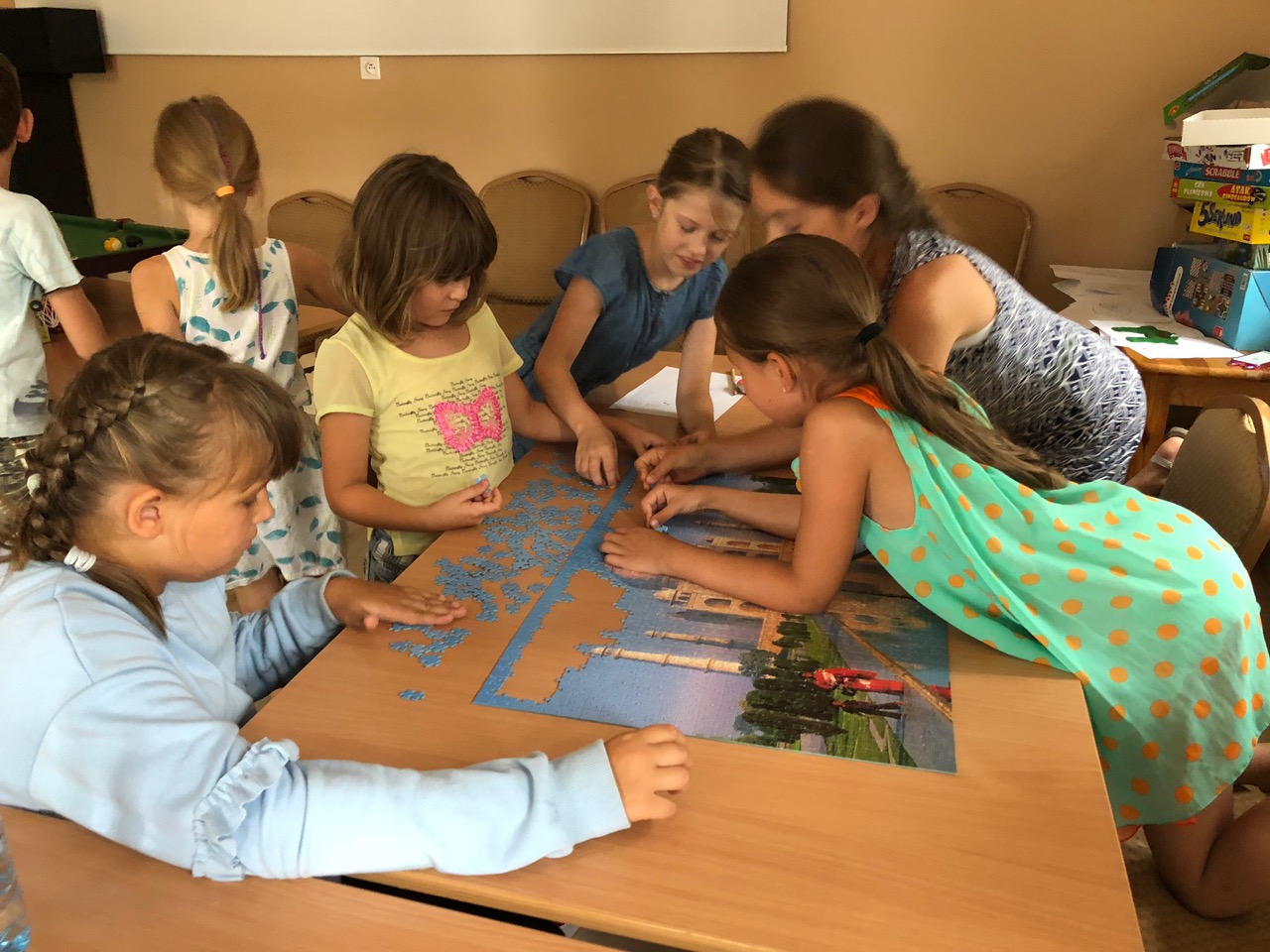 Jak co roku stowarzyszenie zorganizowało zajęcia dla dzieci, które nie wyjeżdżały na wakacje. Atrakcyjna oferta spotkań zgromadziła dużą ilość dzieci. Naszym celem była taka organizacja tygodnia, aby w każdego dnia tygodnia były inne atrakcje. Poniedziałek to dzień poznawania się i wspólne wyjście na plac zabaw. Wtorek poświęcony był kulturze- wyjścia do kina Helios w Alei Bielany. Mimo dużych upałów w każdą środę organizowane były wycieczki między innymi do: ZOO, stacyjkowa, rejs statkiem po Odrze. W Agorze dzieci obejrzały wystawę olbrzymich postaci bajkowych. Pobyt w parku linowym to moc atrakcji związanych z wysiłkiem fizycznym. Tradycyjnie w czwartki uczestnicy zgłębiali wiedzę kulinarną. Dzieci uczyły się kalkulować i liczyć, same robiąc zakupy w markecie pod okiem opiekuna. Z zakupionych produktów wspólnie przygotowywali posiłki i piekli smaczne ciasta. Piątek był dniem relaksu na basenie kąpielowym w Ślęzie. Nie zabrakło również gier i zabaw świetlicowych oraz rozgrywek sportowych na świeżym powietrzu.
